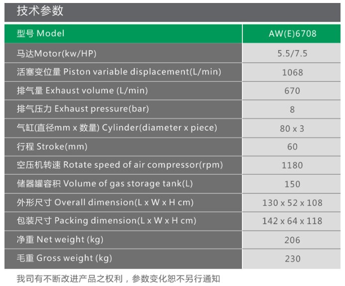 標題:5.5kW/7.5HP 新型節(jié)能環(huán)保活塞空壓機 AW6708