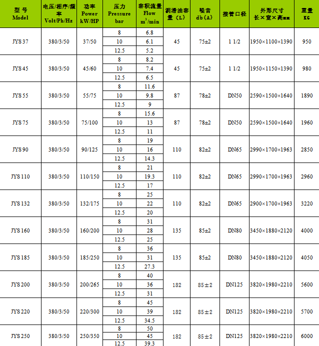 產品名稱:45kW 雙級壓縮螺桿變頻/工頻空壓機 JYS45